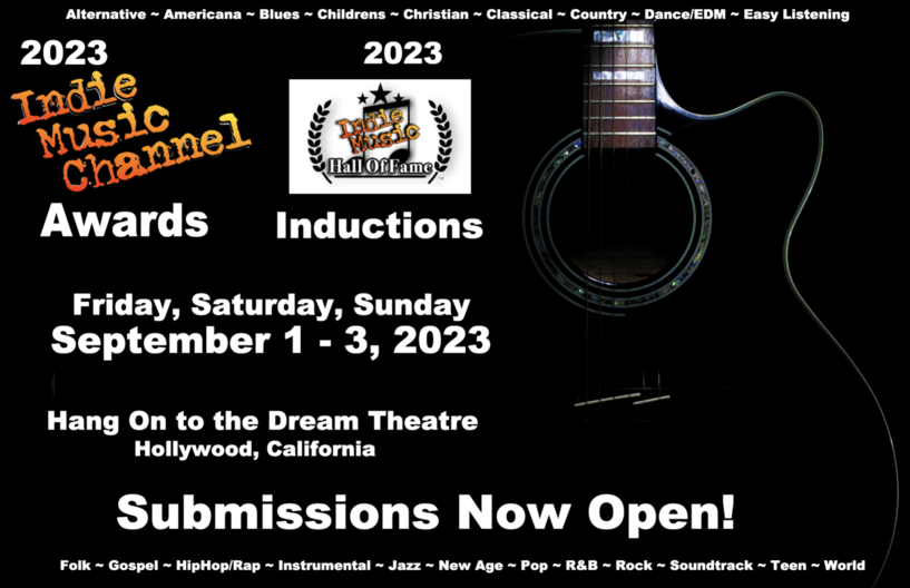 - Songs that were part of a Nominated Album during the 2022 Indie Music Channel Awards ARE eligible for individual submission for the 2023 IMC Awards, as long as the song(s) being submitted did not reach "Nominated" status for an individual award during the 2022 IMC Awards. (Best Song, Best Recording, etc.).